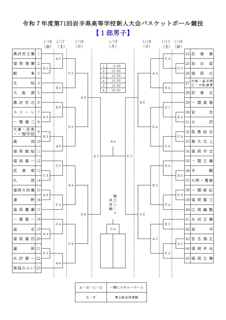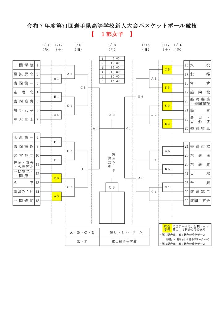 【 岩手県 組合せ 高校バスケットボール新人戦】
