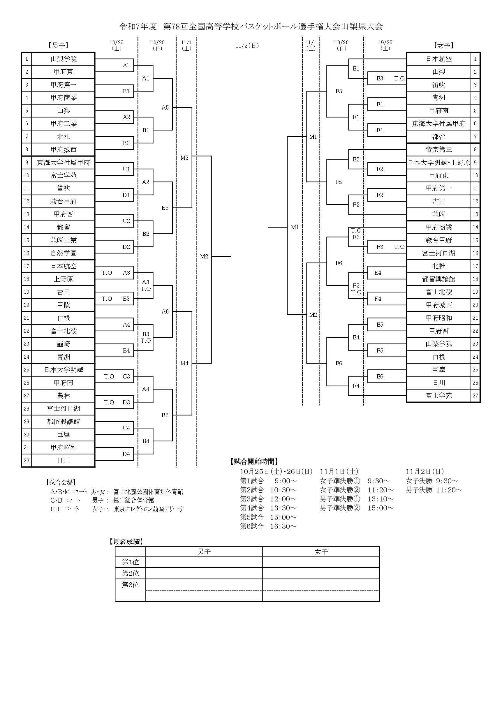 会場:富士北麓公園体育館、東京エレクトロン韮崎アリーナほか
