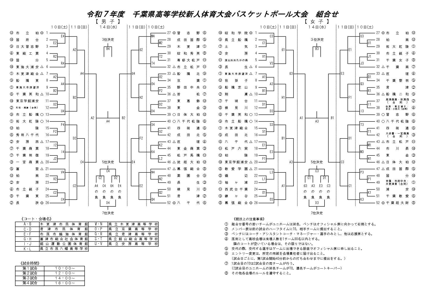 【 千葉県 組合せ 高校バスケットボール新人戦】