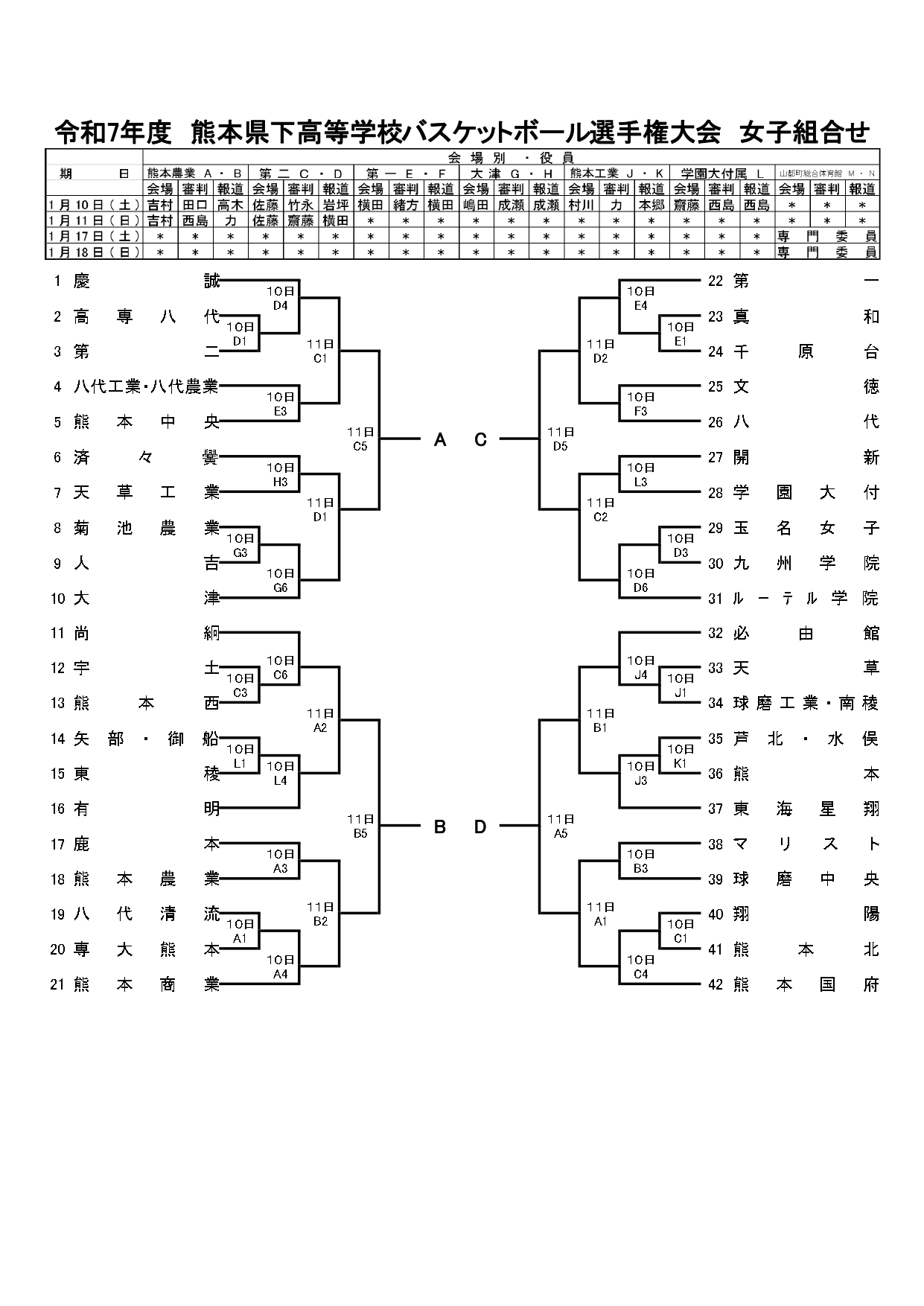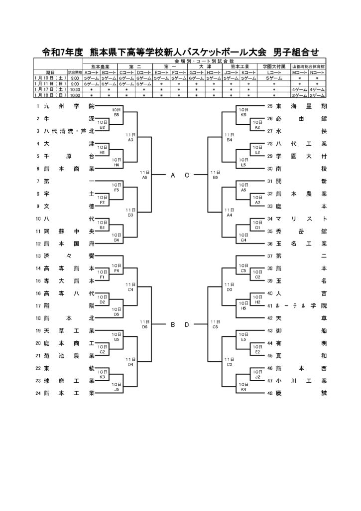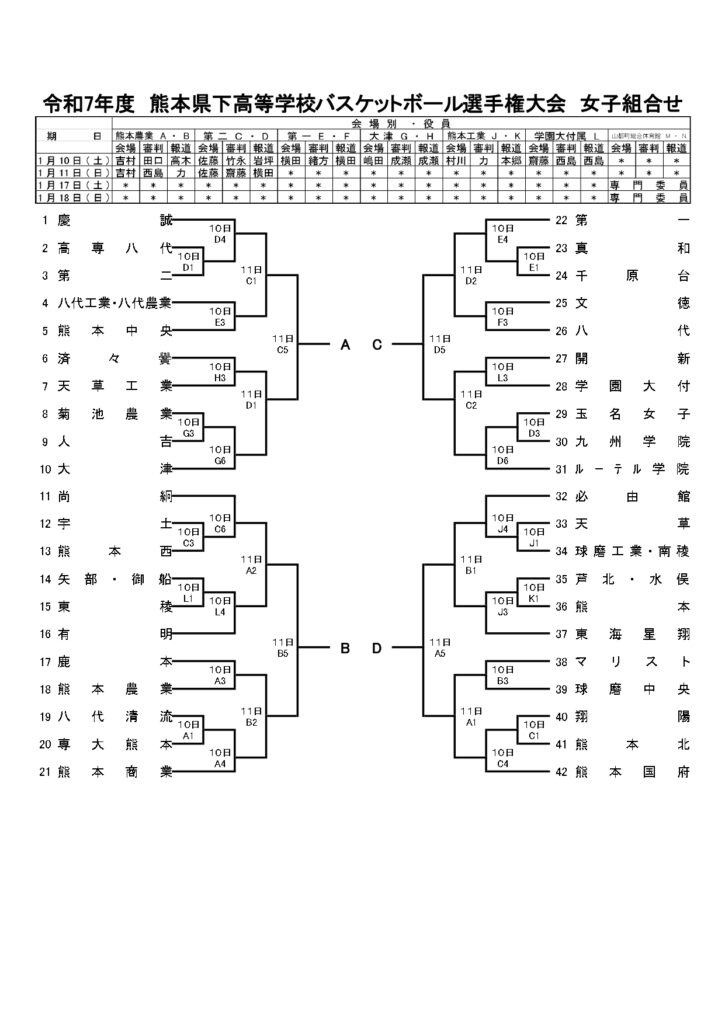 【 熊本県 組合せ 高校バスケットボール新人戦】