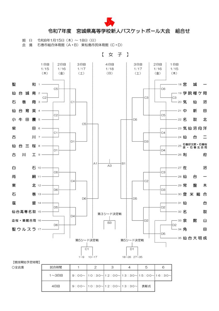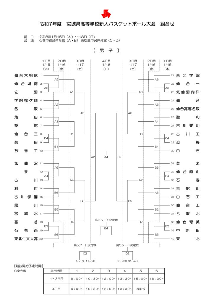【 宮城県 組合せ 高校バスケットボール新人戦】