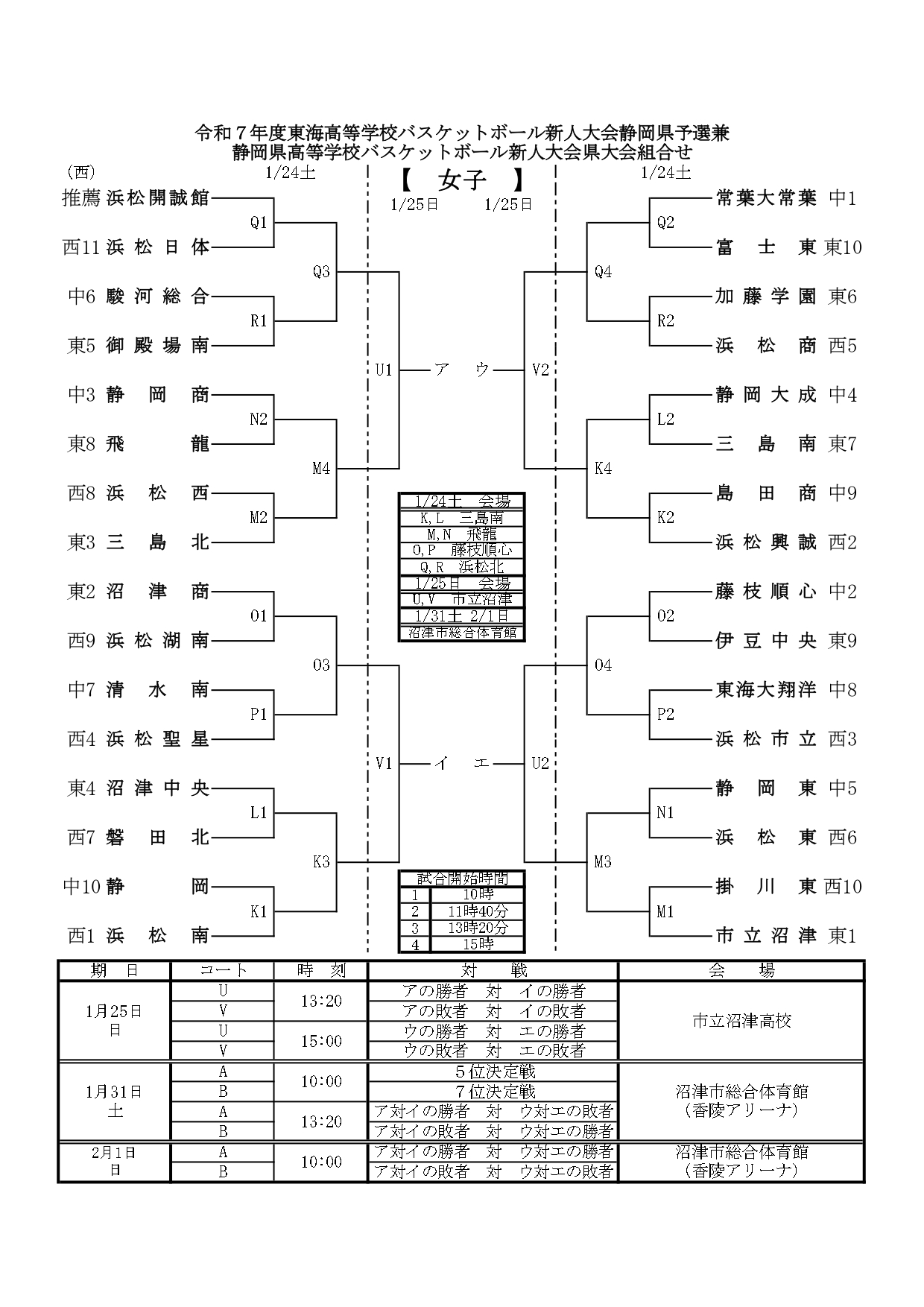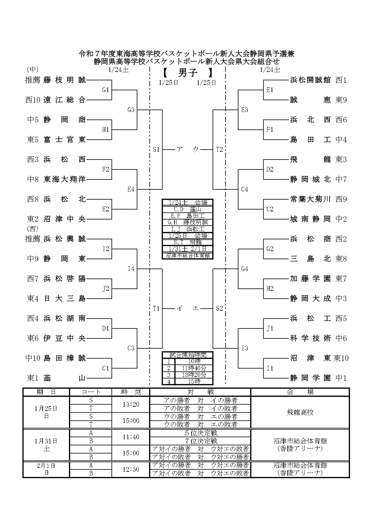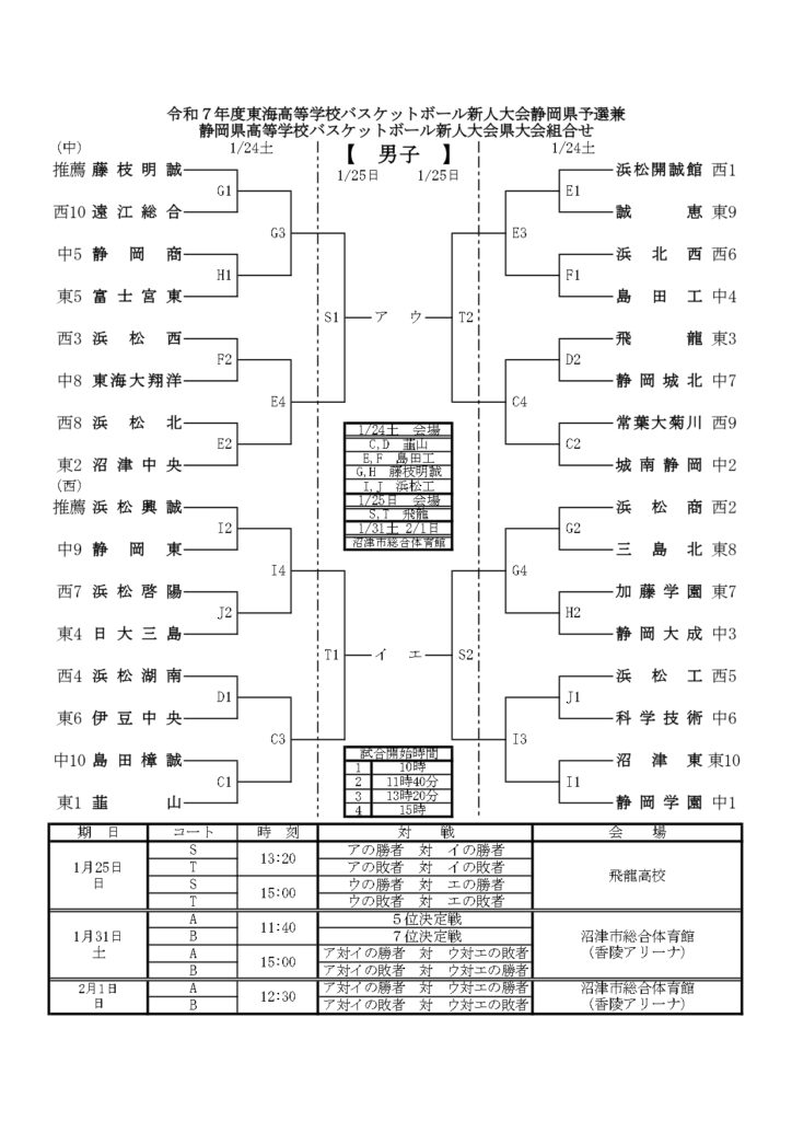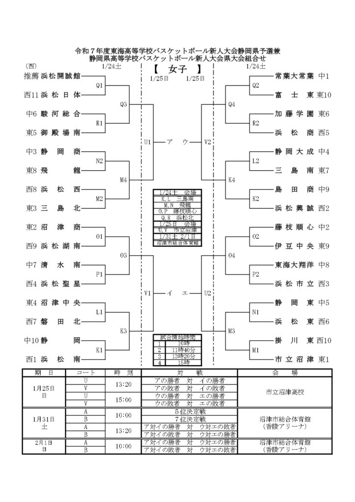 【 静岡県 組合せ 高校バスケットボール新人戦】
