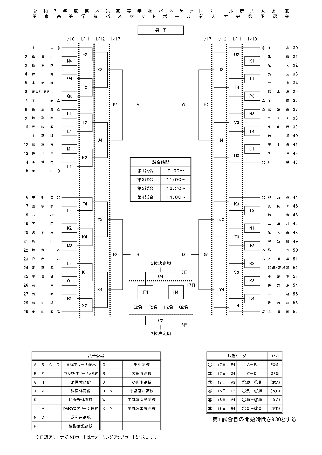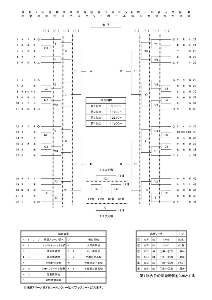 【 栃木県 組合せ 高校バスケットボール新人戦】