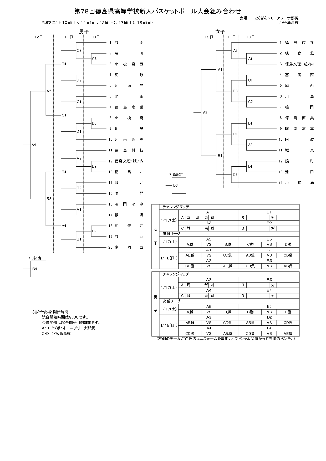 【 徳島県 組合せ 高校バスケットボール新人戦】