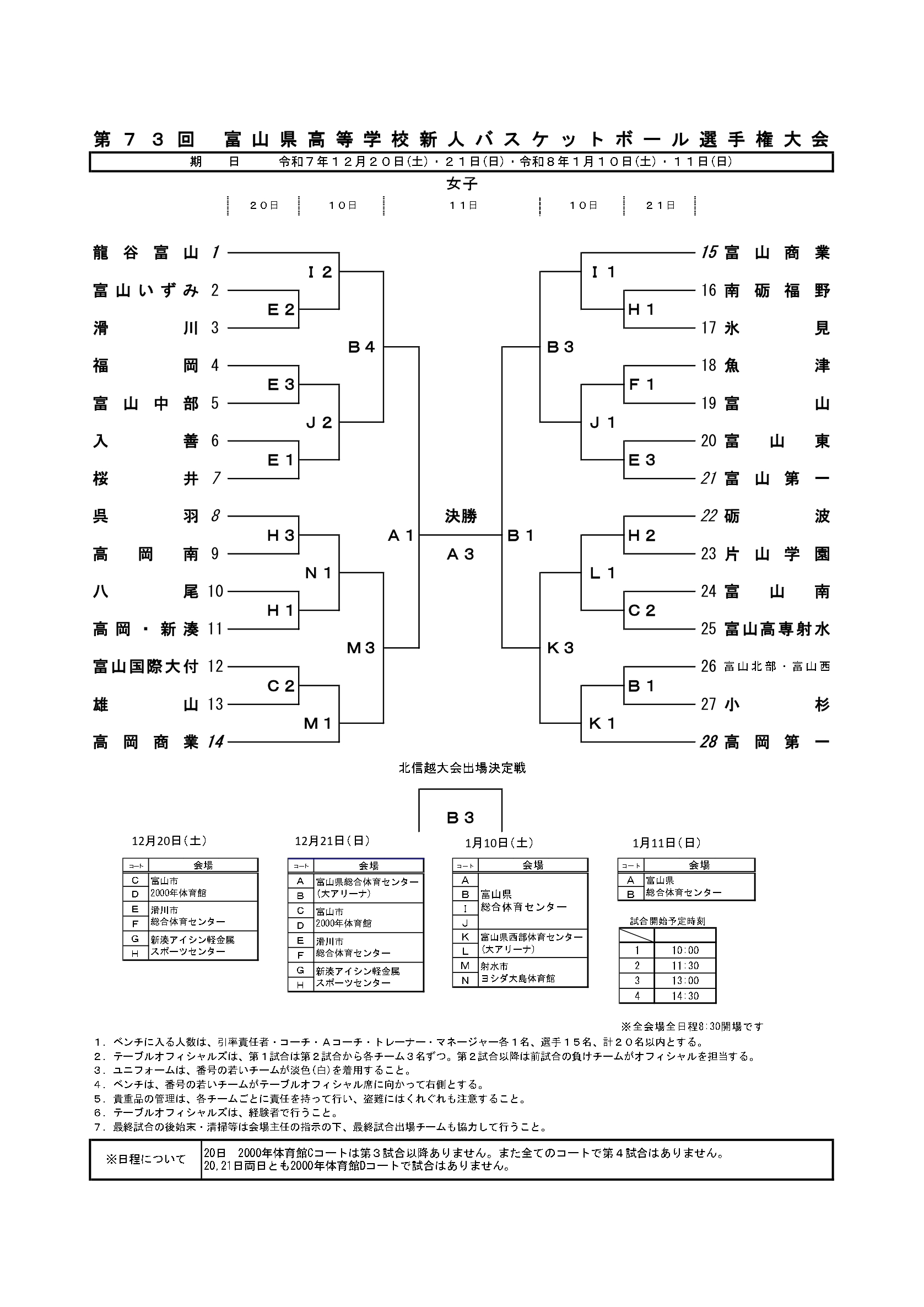 【 富山県 組合せ 高校バスケットボール新人戦 女子】