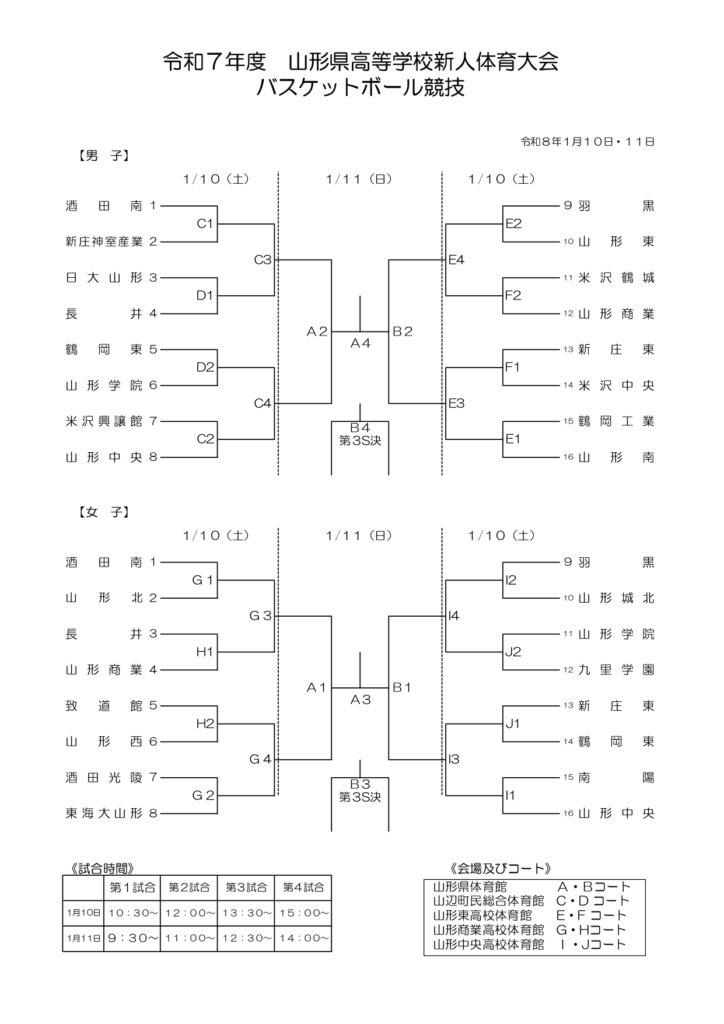 【 山形県 組合せ 高校バスケットボール新人戦】